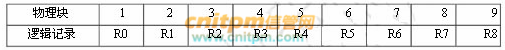 假设某磁盘的每个磁道划分成 9 个物理块,每块存放 1 个逻辑记录。逻辑记录 R0,R1,...,R8 存放在同一个磁道上,记录的安排顺序如下表所示: