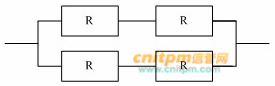 某计算机系统的可靠性结构是如下图所示的双重串并联结构,若所构成系统的每个部件的可靠度为 0.9 ,即 R=0.9 ,则系统的可靠度为 ( ) 。 A、0.9997 B、0.9276 C、0.9639 D、0.6561