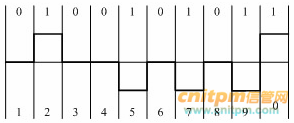 双极型AMI编码经过一个噪声信道,接收的波形如图所示,那么出错的是第 ( )位。 A、3 B、5 C、7 D、9