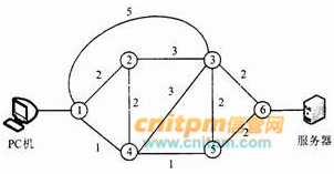 网络由6个路由器互连而成,路由器之间的链路费用如下图所示,从PC机到服务器的最短路径是 (1) ,通路费用是 (2) 。 (1)A、1→3→6 B、1→4→5→6 C、1→4→3-→6 D、1→2→4→5→6(2)A、4 B、5 C、2 D、6