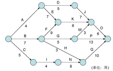 在下面的项目活动网络图中,关键路径的时长为( )周。