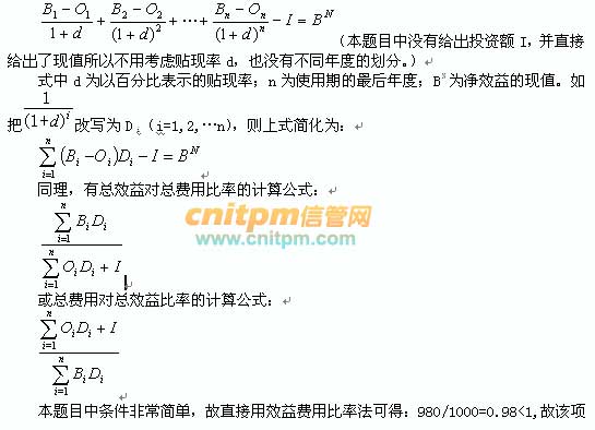● 某项目预计费用现值是1000 万元人民币,效益现值是980 万元人民币。如果采用“费用效益分析法”,可得出结论:(42)。