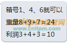 第2个办法:排除法,从大往小看,先看11这个值,现有利润组合加一起重题肯定超过24吨,然后看10这个值,334可以组合出来,重量正好24吨。