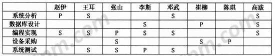 在表2中,P表示“负主要责任”,S表示“负辅助责任”。每项任务只需要一个人负主要责任,但可以安排几个项目组成员辅助他。