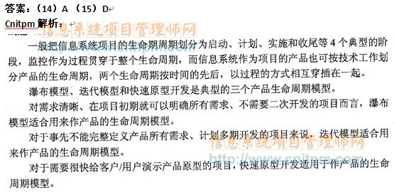 (14)A、瀑布模型 B、迭代模型 C、快速原型开发 D、快速创新开发
