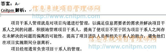A、对项目干系人的管理,由项目团队每个成员分别负责