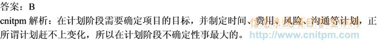 在项目生命周期哪一阶段,项目的不确定性最大?
