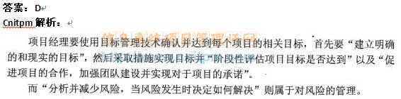 项目经理的一个重要的任务是确认每个项目的相关目标,帮助管理者建立并达到那些目标的方式是目标管理。()不属于目标管理强调的内容。