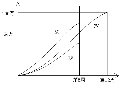 一个预算100万的项目,为期12周,现在工作进行到第八周。已知成本预算是64万,实际成本支出是68万,挣值为54万。