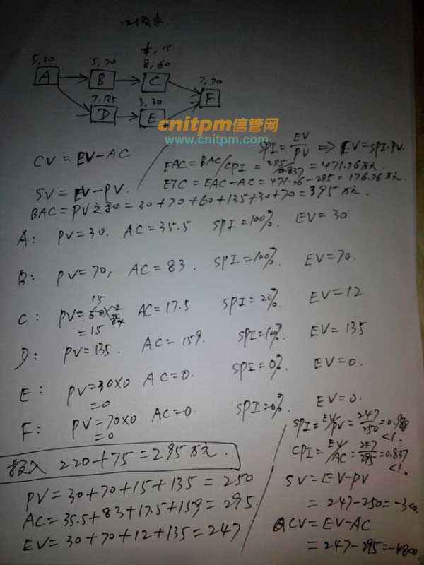典型偏差: etc=(BAC-EV)/CPI=(267.5-247)/83.73%=24.5万元