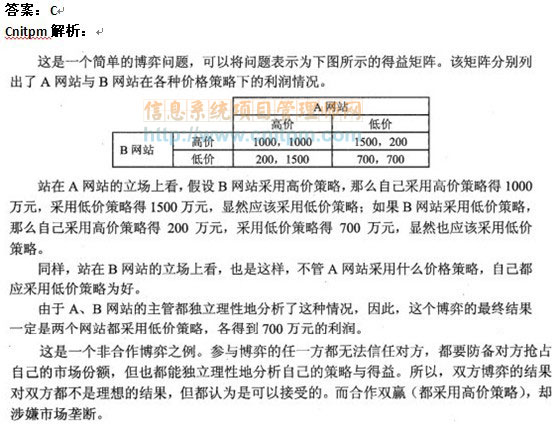 甲、乙两个独立的网站都主要靠广告收入来支撑发展,目前都采用较高的价格销售广告。这两个网站都想通过降价争夺更多的客户和更丰厚的利润。假设这两个网站在现有策略下各可以获得1000万元的利润,如果一方单独降价,就能扩大市场份额,可以获得1500万元利润,此时,另一方的市场份额就会缩小,利润将下降到200万元。如果这两个网站同时降价,则他们都将只能得到700万元利润。这两个网站的主管各自经过独立的理性分析后决定,()