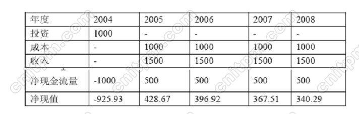 从该表可以看出,到第三年即2007 年开始收回投资,动态投资回收率要考虑贴现率,不过此表已给出净现值。第三年要收回 -929.93+428.67+396.92=100.34万元才能将投资全部收回,第三年总共可以收入净现值为 363.51 ,则100.34 万元大概需要100.34/363.51=0.27 年。所以,动态投资回收率=2 年+0.27 年=2.27 年。