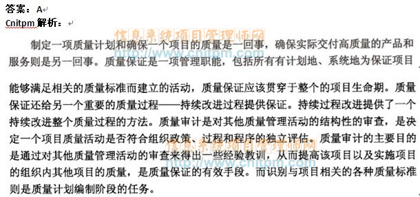 A.质量保证主要任务是识别与项目相关的各种质量标准
