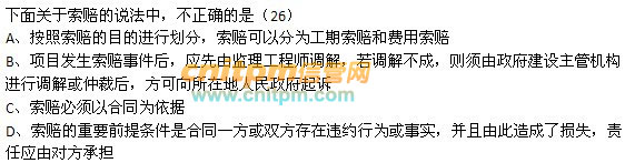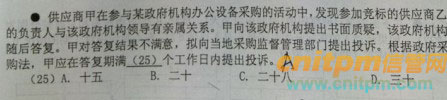 老鬼选的是D.但blackswan认为应该选C.因为招投标法实践中所谓的专家,都是行业内的专家,是第三方的专家,都有专家库的,而且即使企业的专家被抽中了,也要回避的.不可能是企业内部的专家.所以此题考点是绕着弯考察考生对委员会组成的理解.而D的标底问题,现在主流的做法都是明标暗投.标底是可以公开的.教材描述不可公开的前提,是暗标的情况.所以说,书本知识要和实践结合.对高级项目经理的考察,不会简单地考察教材里的原文这么简单,这不符合近年来考题喜欢绕弯的做法.