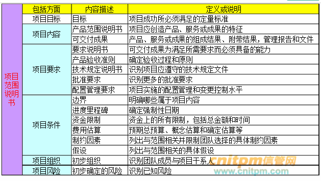 范围基准包括范围说明书、wbs与wbs词典三大部分。