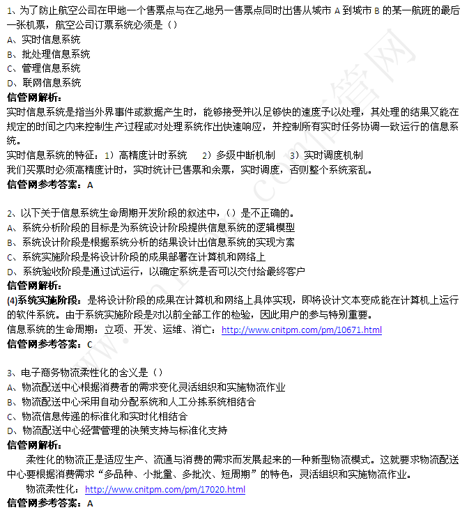 点击下载>>最新最全2005至2014年信息系统项目管理师历年真题打包文件(含2014下解析)