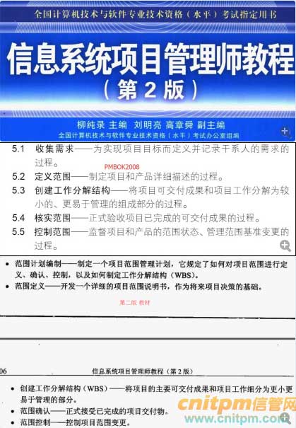 考试用书是用以下这本吗,怎么发现跟pmbok2008有很多不一样的,例如范围管理pmbok中第一个过程为收集需求,但以下这本书中说的却是规划范围