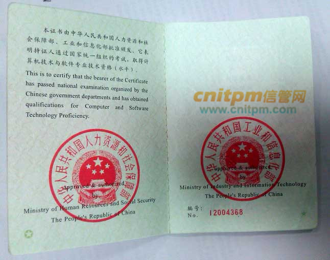 专业技术资格证书:软考通过后既可获得《中华人民共和国计算机技术和软件专业技术资格(水平)证书》(以下简称软考证书),这个证书意味这你已经取得我国相应级别的专业技术资格证书(即俗称的职称证书)。这个国家文件上也有规定,国家人事部、信息产业部——国人发2003 39号文件 里自己查。通过考试意味这取得职称证书,不用啥职称评审委员会评职称了,因为你考试取得的证书已经和评审后取得证书一样是由国家人社部、工信部署章,省级人社职称部门发放的。可以参考我的资格证书、资格证登记表、职改办文件。