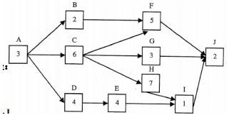 请阅读以下描述,在下面的网络图中,每个节点是一个活动,在方框中的数字表示工期的天数。关键路径是: A. A-C-F-J B. A-C-G-J C. A-C-H-I-J D. A-D-E-I-J
