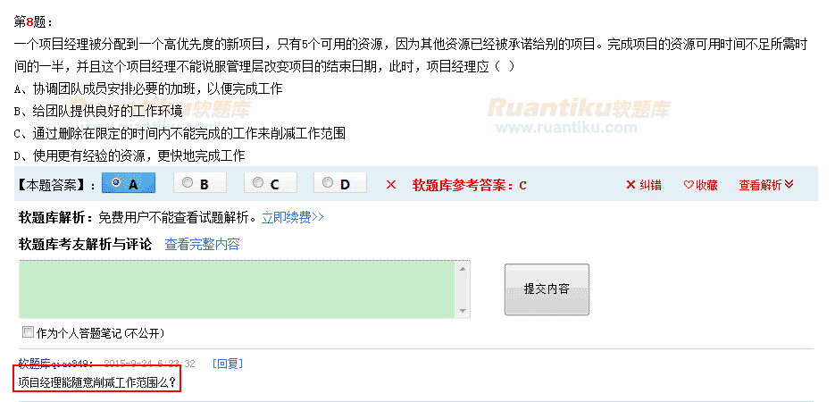答案c 没有问题的,大公司都走需求申请工单,资源没有就减工作量