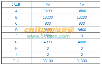 按最终进度计划执行到第40天晚对项目进行监测时发现,活动D完成一半,活动E准备第二天开始,活动G完成了1/4;此时累计支付的实际成本为40000元,请在下表中填写此时该项目的绩效信息。