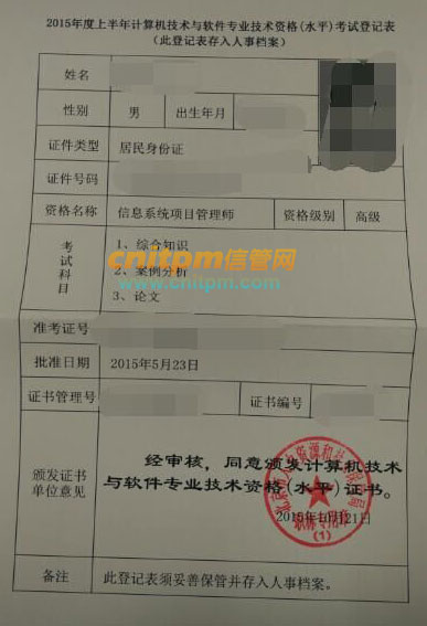 2015年北京市计算机技术与软件资格考试合格人员登记表样本