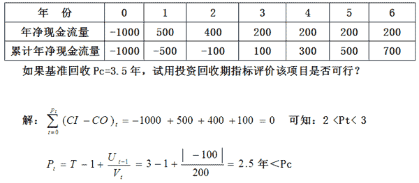 以投资回收期指标作为项目可行或择优的依据时,其判别的准则为:行业的基准投资回收期为Pc,若P t=<Pc,表明项目可在低于标准投资回收期的时间内收回投资,方案可行。