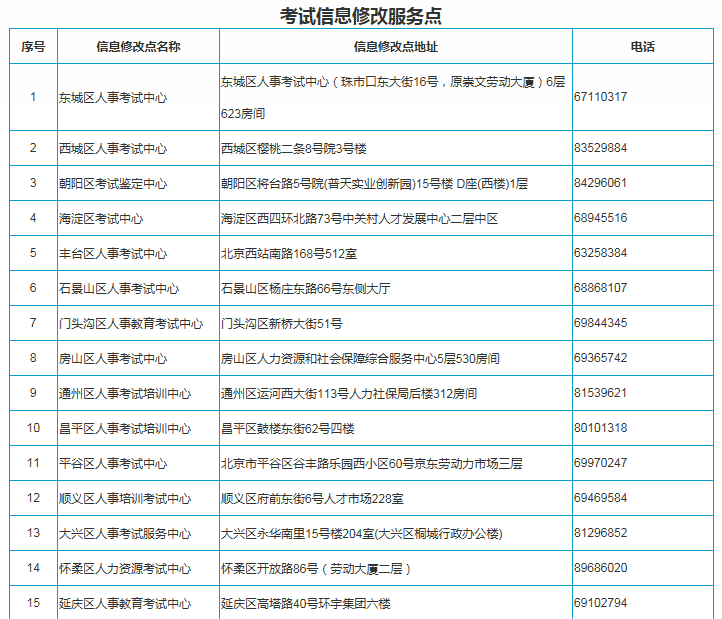 报名结束后需要修改基本信息的考生到北京市人事考试中心(海淀区莲花苑3号楼(莲花小区内四层独楼))办理。须携带申报表(可在报名系统中进行打印)、本人身份证明原件及复印件;如委托他人代办的,须持代办人和被代办人身份证原件及复印件(一同复印在A4纸上并签署被代办人委托意见)。如须修改照片信息,还应携带符合文件要求的电子版照片。考试级别、专业、科目修改不再办理。