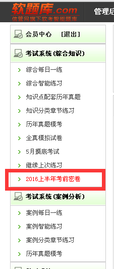 2016上半年软题库信息系统项目管理师和系统集成项目管理工程师考前密卷已发布,请各位具备权限的会员登录软题库在线答题。