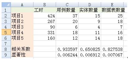 现在我们不但得到了相关函数,还得到了如下有用的数据结果:这个团队在目前的管理模式下,开发一个项目平均准备时间为56.251人时,而平均每个用例开发耗时为10.653人时。