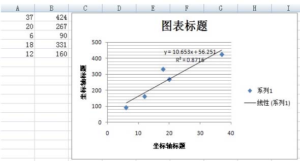 将以前的历史数据代入上述方程,就可以得到a和b的最小二乘估计。同样,这种机械而乏味的计算一般交由工具去完成。我用Excel得到a和b的估计分别为56.251和10.653.Excel分析结果如图3所示: