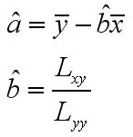下面我们估计a和b的值。估计方法有很多,如曲线拟合法或最小二乘法。这里我们采用最小二乘法进行估计。
