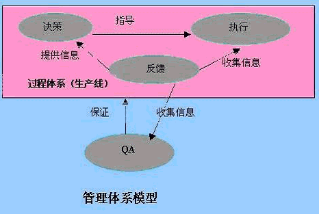 抽象出管理体系模型的如下,这个模型说明了一个过程体系至少应当包含 “决策、执行、反馈”三个重要方面。