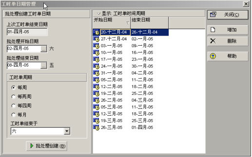 创建和派发工时单的工作可以由公司人力资源主管或者项目经理完成。首先确定工时单的反馈周期,IT公司一般每周即可。P3E支持批量生成工时单。如下图,是批量生成下周所有员工的工时单。