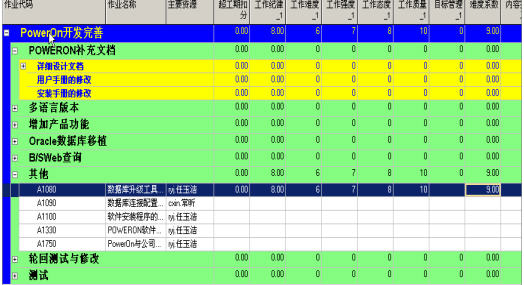 利用P3E的赢得值管理,也可以对工作业绩进行考核,通过对工期预算值、实际值及赢得值的对比分析,可以得出进度是否拖期,人工时消耗与预算相比,是节约还是透支等等。