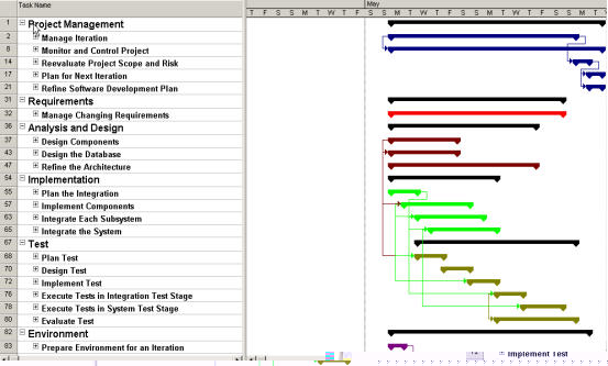 下图是IBM Rational RUP(统一软件开发过程)的计划模板。
