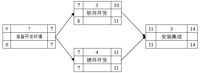 图2右侧是单代号网络图(单位为工作日),左侧是图列。在确保安装集成活动尽早开始的前提下,软件开发活动可以推迟(37)个工作日。