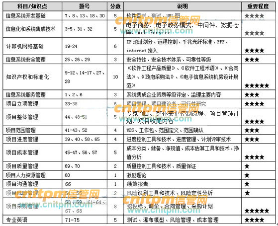2012年下半年系统集成项目管理工程师综合知识试题考查的知识点分布如表1所示。