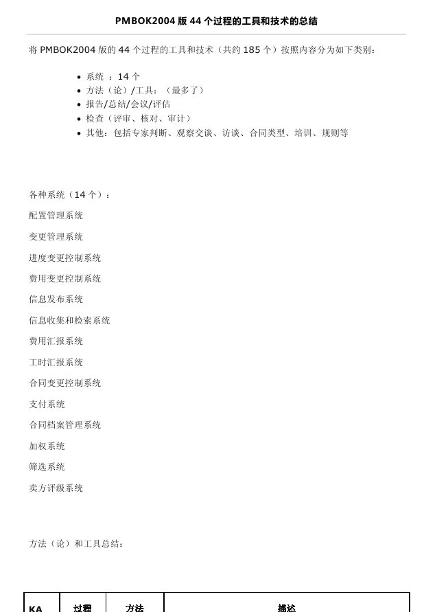 PMBOK2004版44个过程的工具和技术的总结下载地址:https://www.fzyzx.cn/down/ShowForum-133404-1.htm