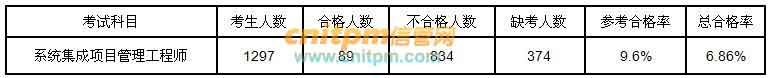 2012年上半年江苏南京考区2012年上半年参加系统集成项目管理工程师考试的报名人数为1297人,合格人数为89人,不合格人数为834人,缺考人数为374人,合格率6.86%,如果按参加考试人数计算,合格率为9.6%