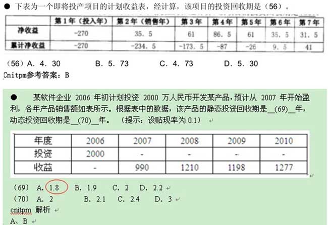 2012年上半年69,70题给的答案,没算第一年;2010年下半年56题的答案,算了第一年!