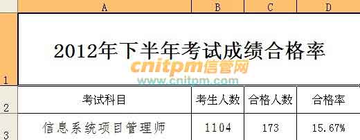 | 信息系统项目管理师 | 1104 | 173 | 15.67% |