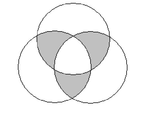 原理2:如果被计数的事物有A、B、C三类,那么,A类和B类和C类元素个数总和= A类元素个数+ B类元素个数+C类元素个数—既是A类又是B类的元素个数—既是A类又是C类的元素个数—既是B类又是C类的元素个数+既是A类又是B类而且是C类的元素个数。(A∪B∪C = A+B+C - A∩B - B∩C - C∩A + A∩B∩C)