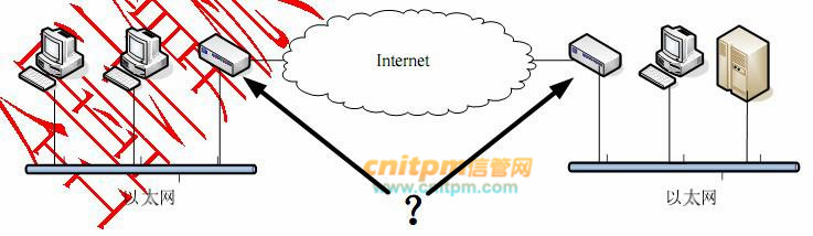集成网解析:局域网接入因特网要通过路由器,图中箭头所指的两个设备是路由器。