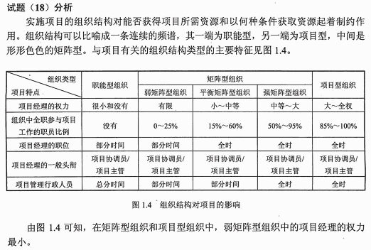(18)A. 强矩阵型组织 B. 平衡矩阵组织 C. 弱矩阵型组织 D. 项目型组织
