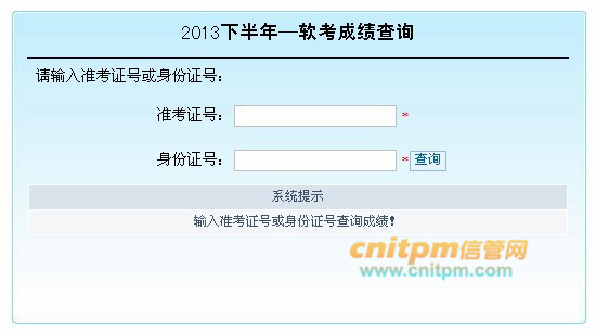 贵州省已开通2013下半年信息系统项目管理师、系统集成项目管理工程师成绩查询,请点击下图进行查询