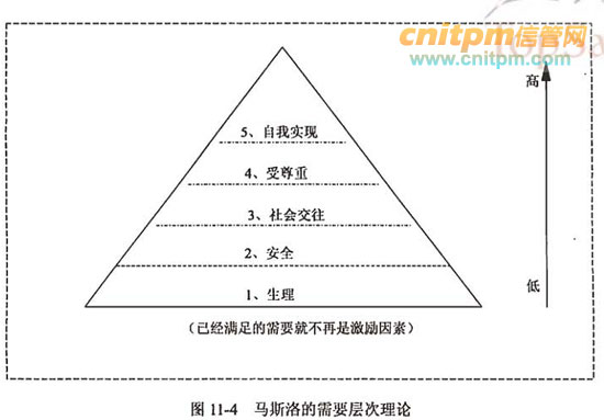 马斯洛建立了一个需要层次理论,图11-4 就是该层次理论的基本结构,是一个5 层的金字塔结构。