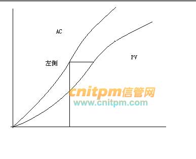 实际进度在PV左侧,应该是AC在PV上,应该是超支了吧