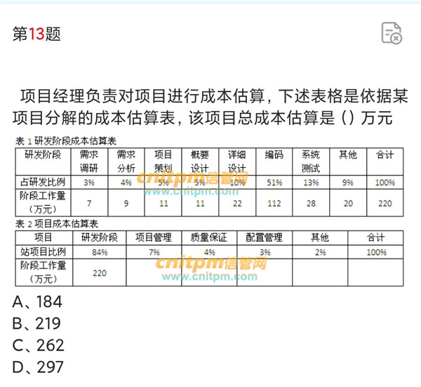 总成本估算*84%=220 即(x*84%)=220 算的x=261.9 约 262