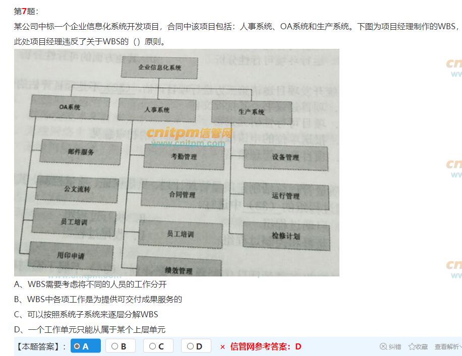 请问这道题应该怎么理解,什么是一个工作单元只能从属于某个上层单元